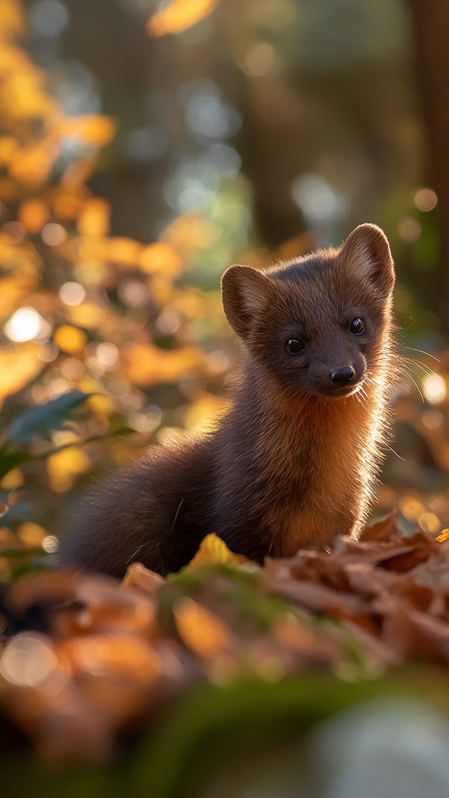 Edytor tapety: Kuna leśna wśród suchych jesiennych liści