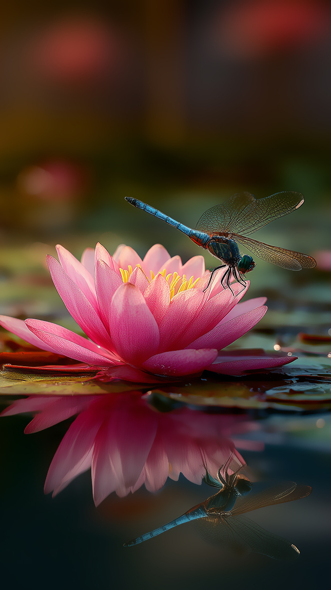 Edytor tapety: Ważka na różowej lilii wodnej