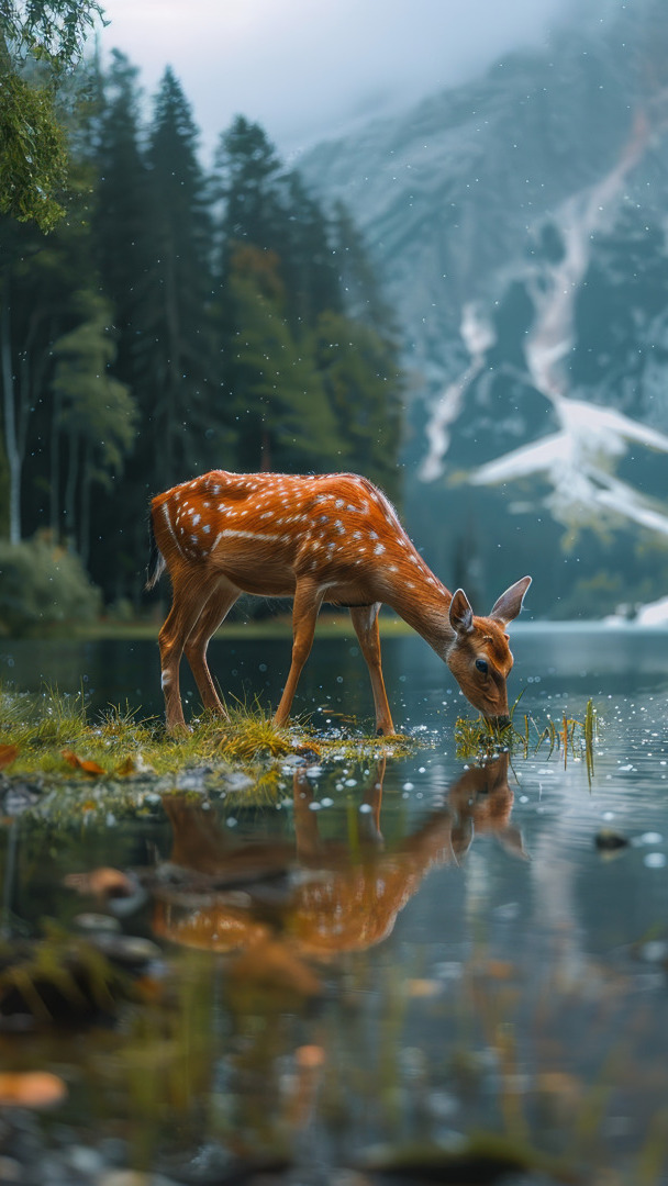 Edytor tapety: Sarna pijąca wodę z górskiej rzeki