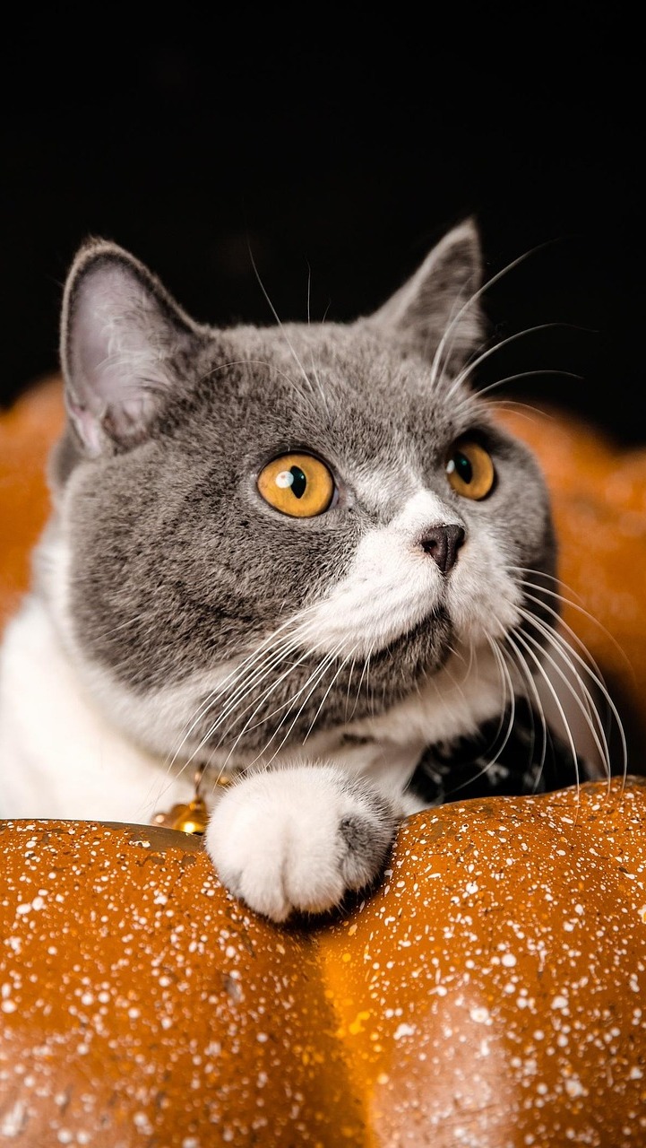 Edytor tapety: Szaro-biały kot patrzący w górę