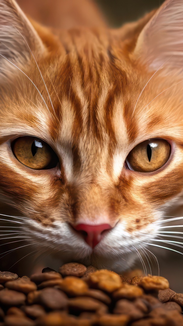 Edytor tapety: Mordka rudego kota obok karmy