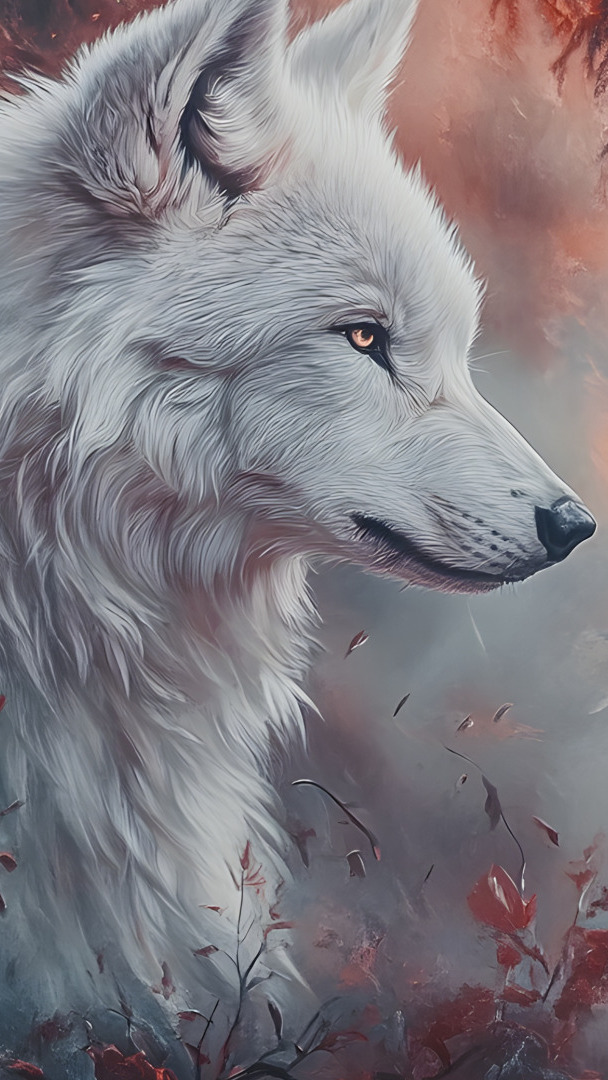 Edytor tapety: Grafika z białym wilkiem