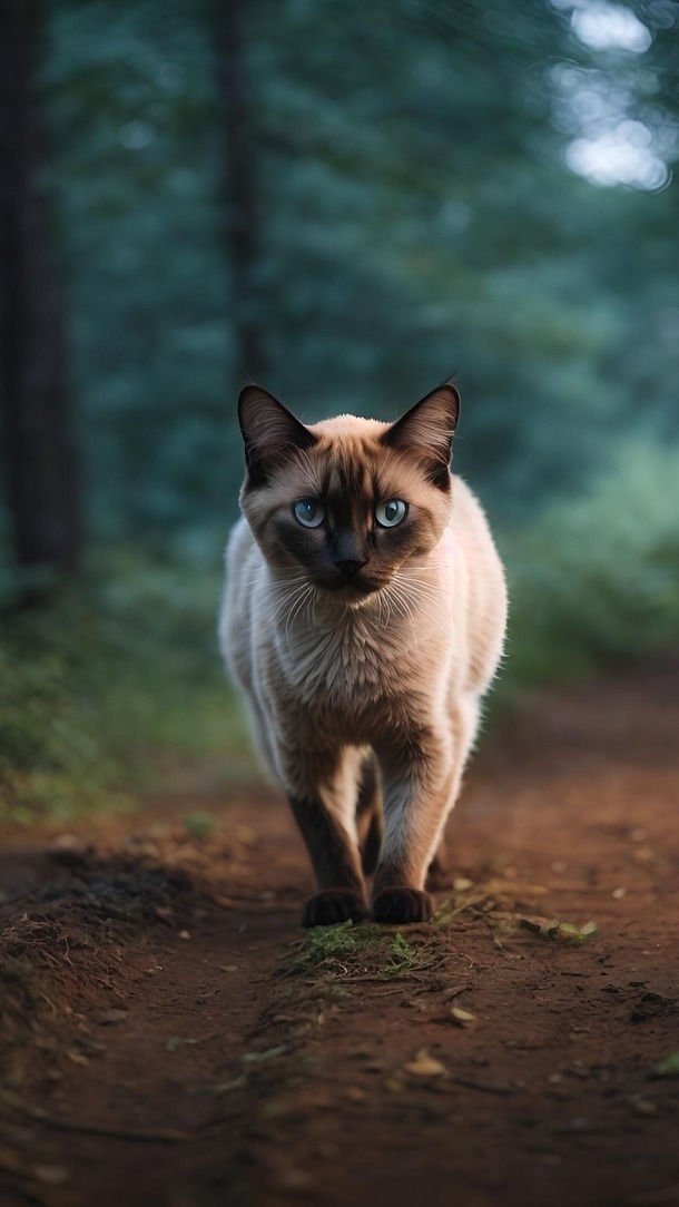Edytor tapety: Kot syjamski na leśnej ścieżce
