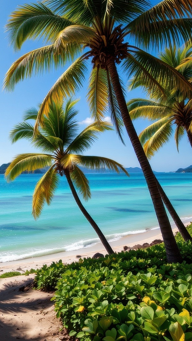 Edytor tapety: Palmy wśród roślin przy morskiej plaży