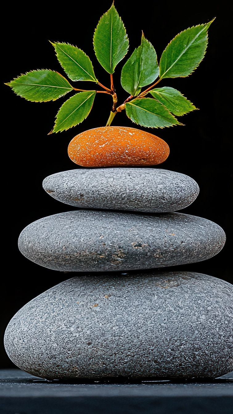Edytor tapety: Liście na piramidce z czterech kamieni