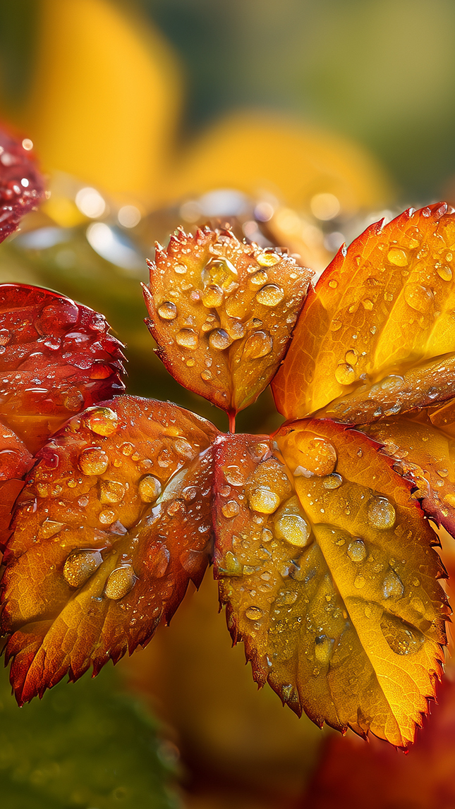 Edytor tapety: Krople na żółtych jesiennych liściach