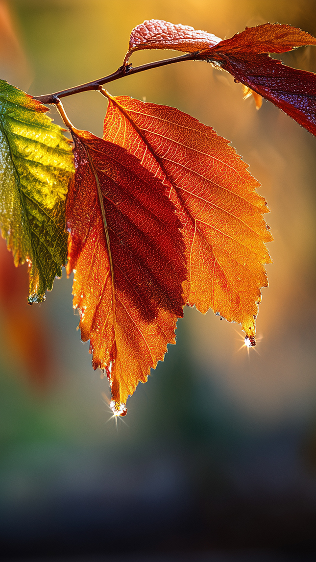 Edytor tapety: Krople na kolorowych jesiennych liściach