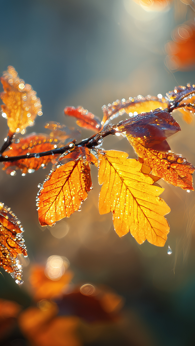 Edytor tapety: Mokre jesienne liście na gałązce