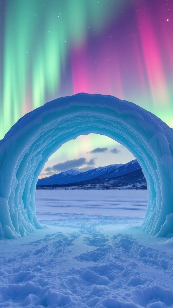 Edytor tapety: Zorza polarna nad ośnieżonym łukiem