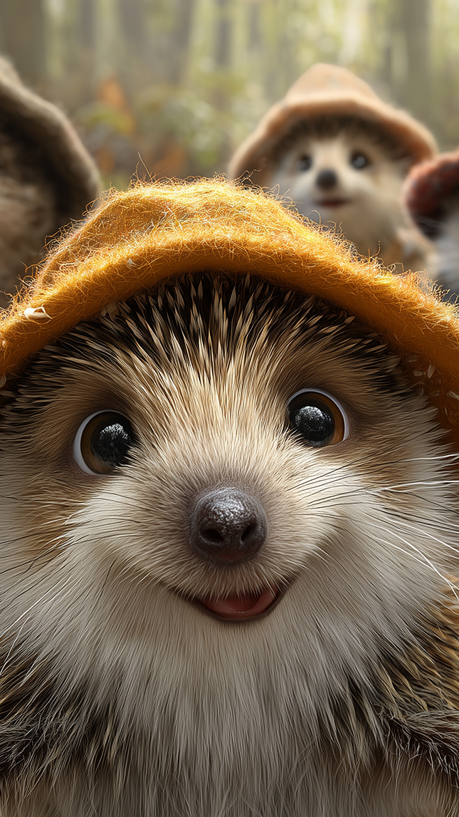 Edytor tapety: Jeż w wełnianym kapeluszu w zbliżeniu