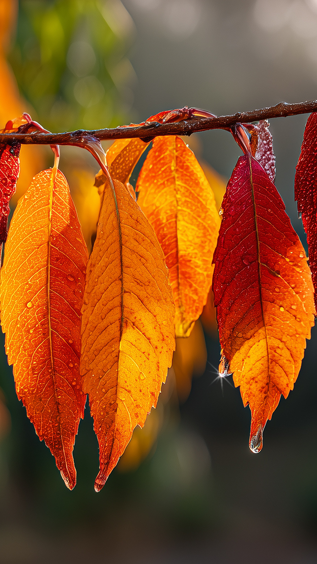 Edytor tapety: Gałązka z mokrymi jesiennymi liśćmi