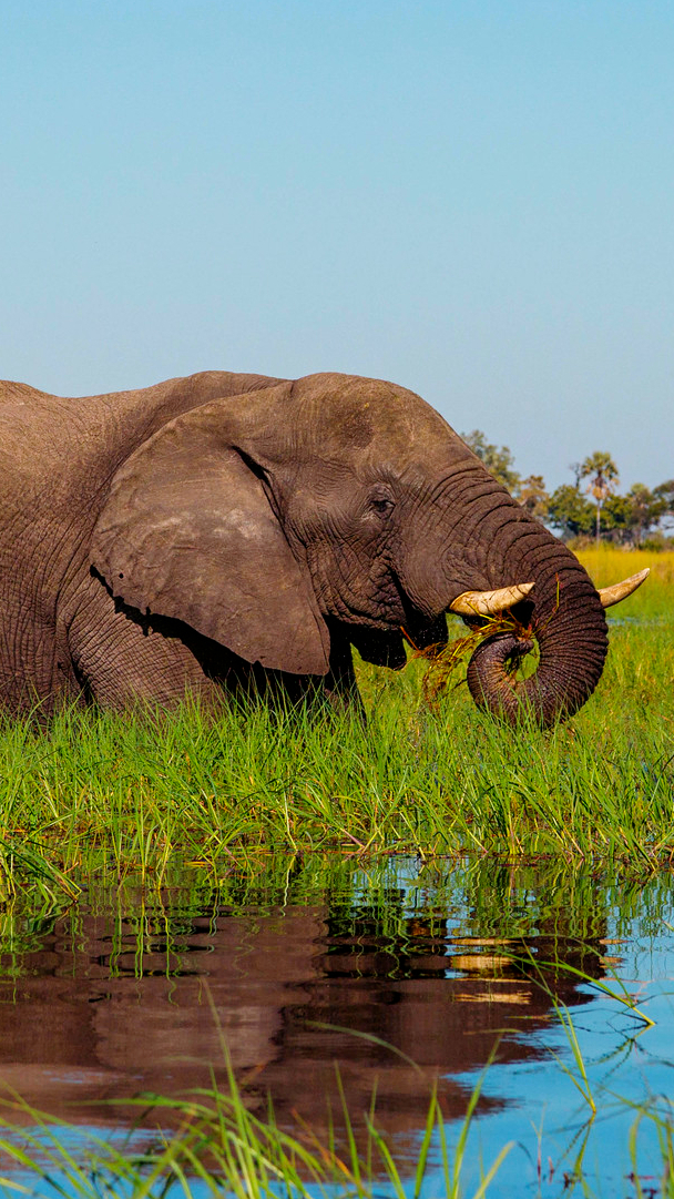 Edytor tapety: Słoń wśród traw nad rzeką