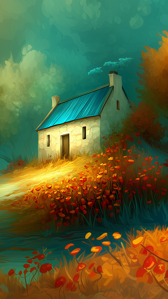 Edytor tapety: Dom na wzgórzu obok jesiennych drzew