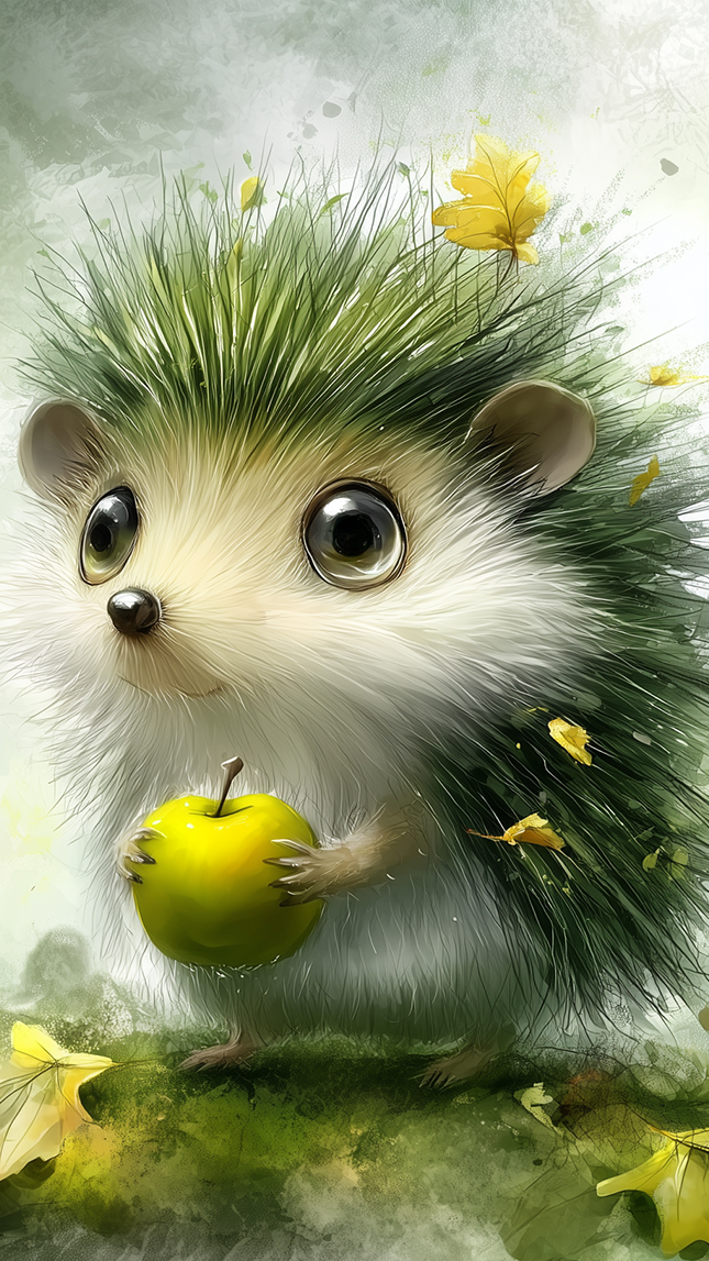 Edytor tapety: Jeż z jabłkiem w grafice