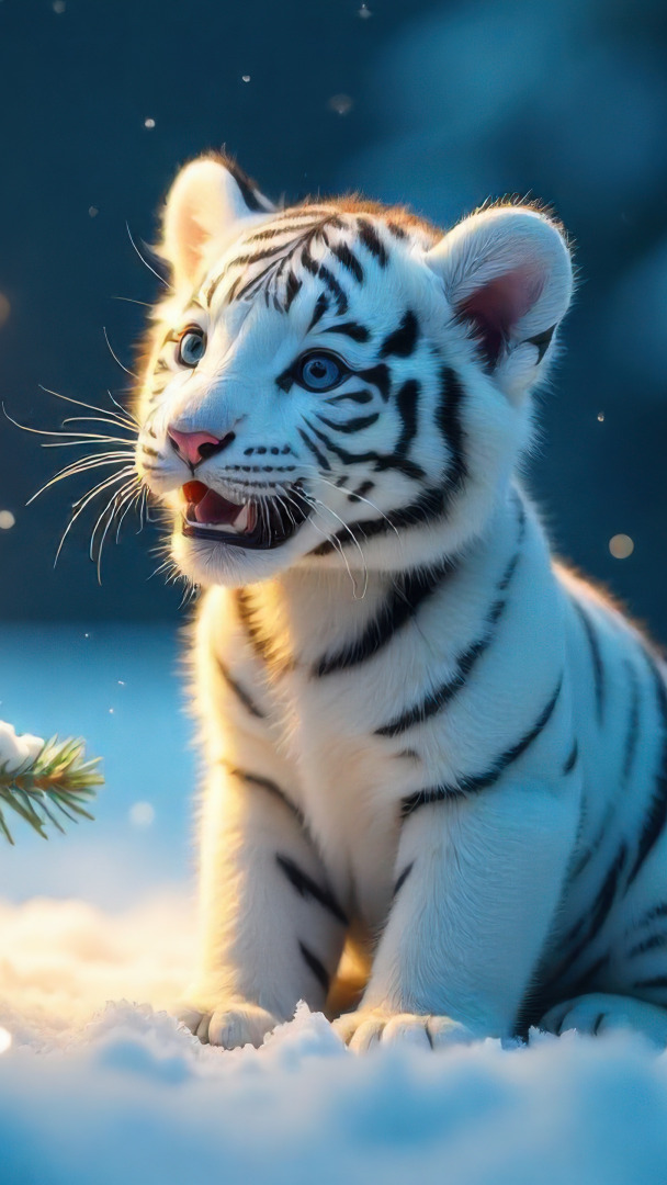 Edytor tapety: Mały biały tygrysek na śniegu