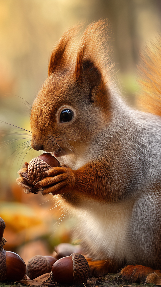 Edytor tapety: Wiewiórka z żołędziem w łapkach
