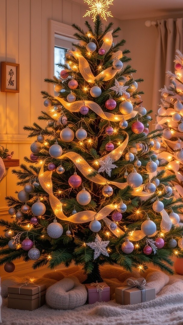 Edytor tapety: Prezenty pod udekorowaną choinką w salonie