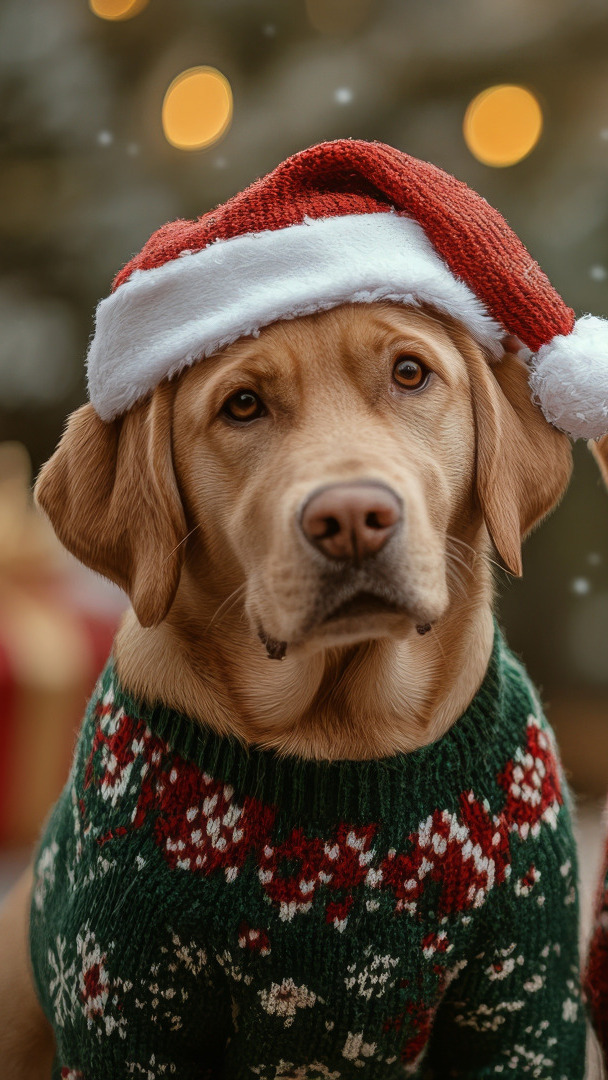 Edytor tapety: Pies w czapce Mikołaja i swetrze