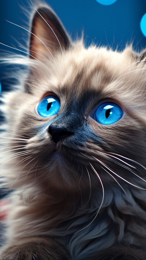 Edytor tapety: Puszysty kot z niebieskimi oczami