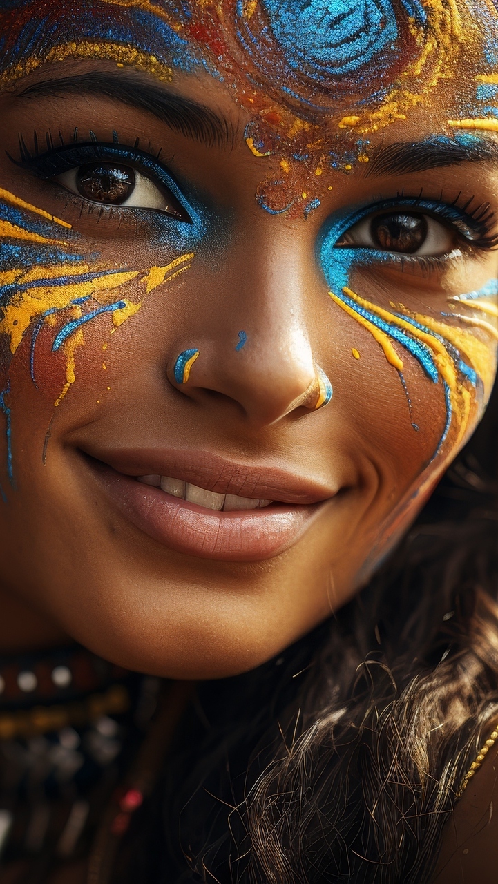 Edytor tapety: Pomalowana twarz uśmiechniętej kobiety