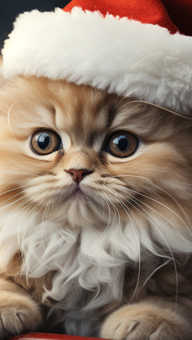 Edytor tapety: Puszysty kotek w czapce Mikołaja