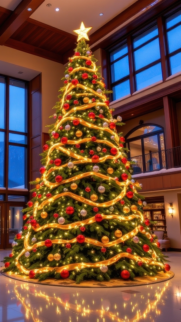 Edytor tapety: Udekorowana choinka z gwiazdą w salonie