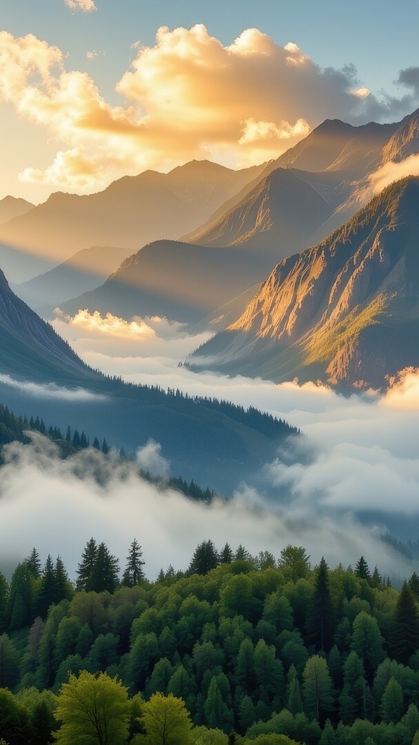 Edytor tapety: Opadająca mgła nad doliną