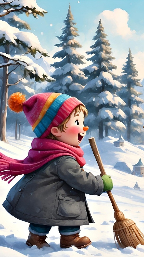 Edytor tapety: Dziecko z miotłą na śniegu