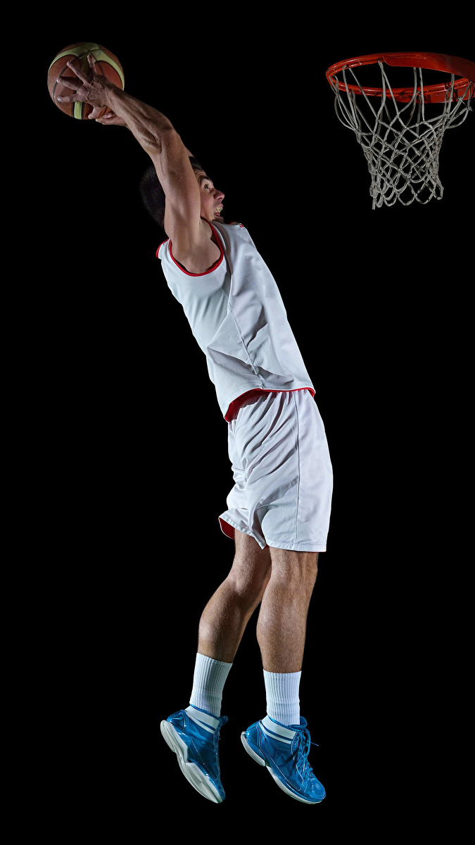 Edytor tapety: Koszykarz podczas rzutu piłki do kosza