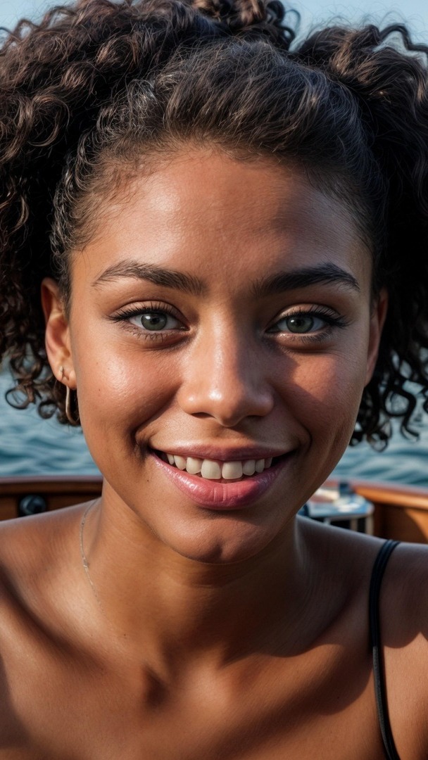 Edytor tapety: Uśmiechnięta ciemnoskóra kobieta z kręconymi włosami