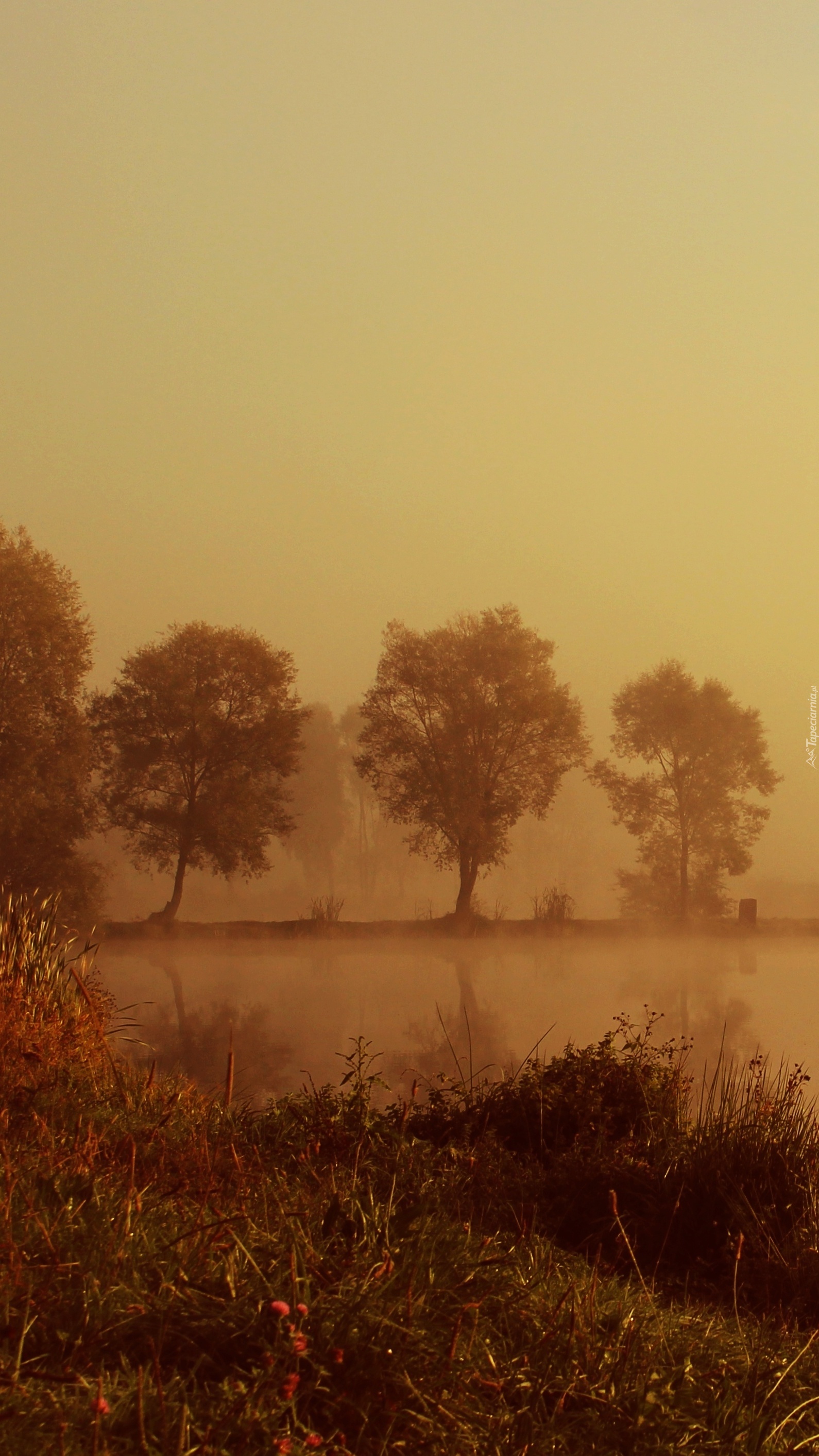 Edytor tapety: Zamglone drzewa w sepii