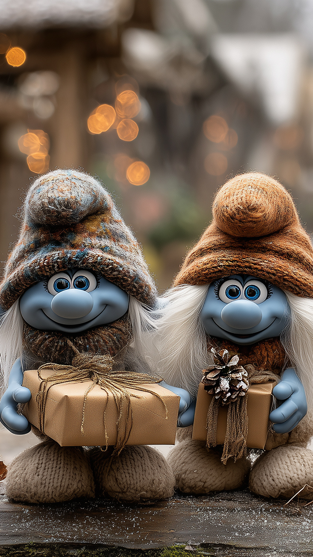 Edytor tapety: Dwa smerfy z prezentami