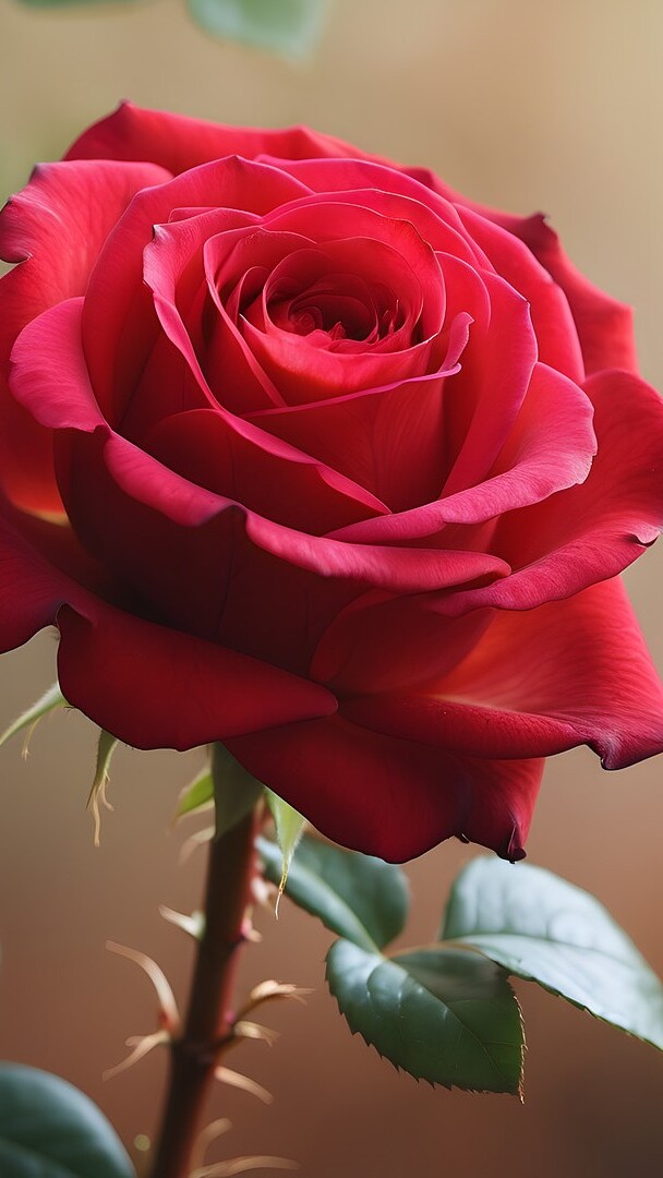 Edytor tapety: Rozkwitająca czerwona róża w zbliżeniu
