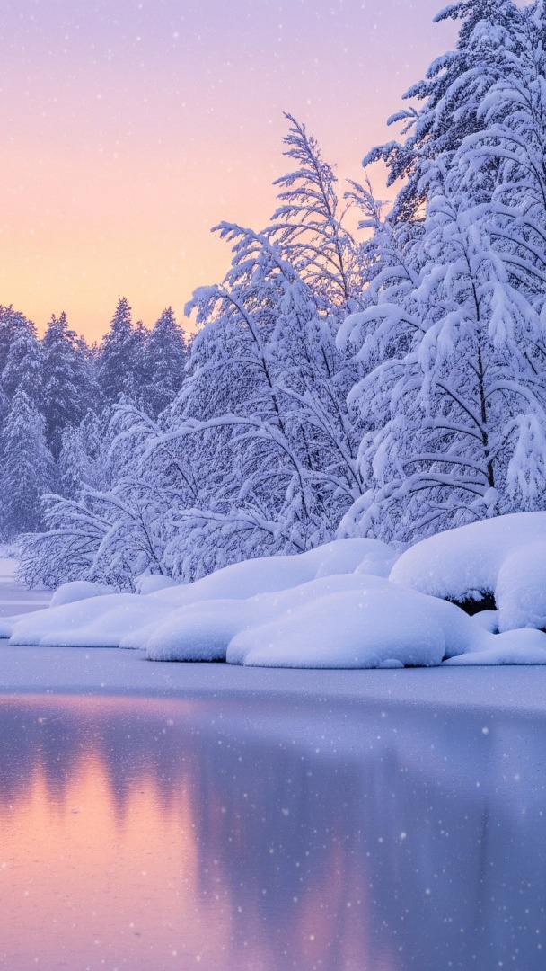 Edytor tapety: Ośnieżone drzewa nad zamarzniętą rzeką