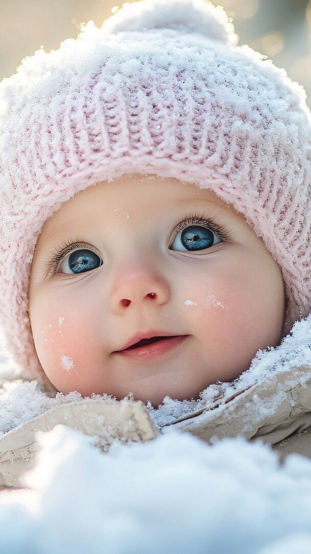 Edytor tapety: Dziecko w ośnieżonej czapce i kurtce