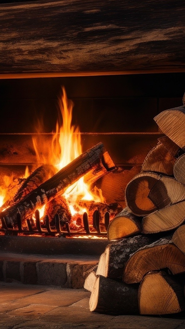 Edytor tapety: Drewno przy zapalonym kominku