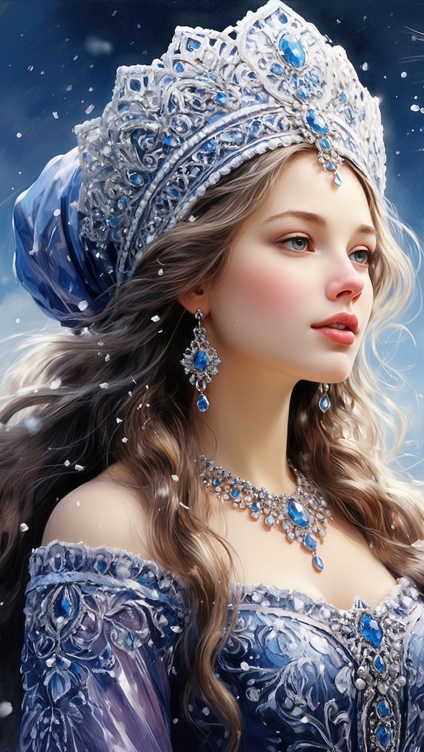 Edytor tapety: Kobieta w niebieskiej sukni z biżuterią