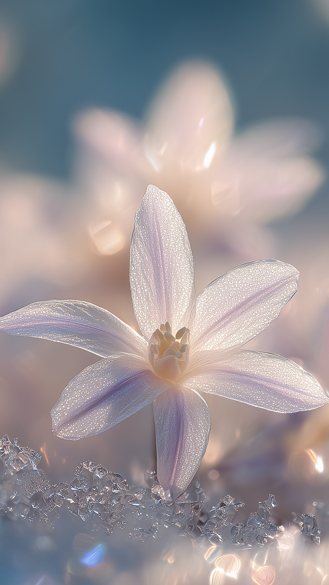 Edytor tapety: Rozświetlony biały śniedek baldaszkowaty w śniegu