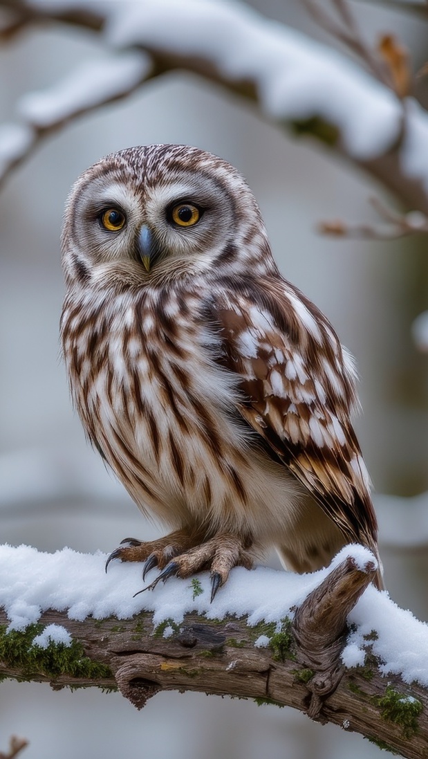 Edytor tapety: Sowa na ośnieżonej gałązce