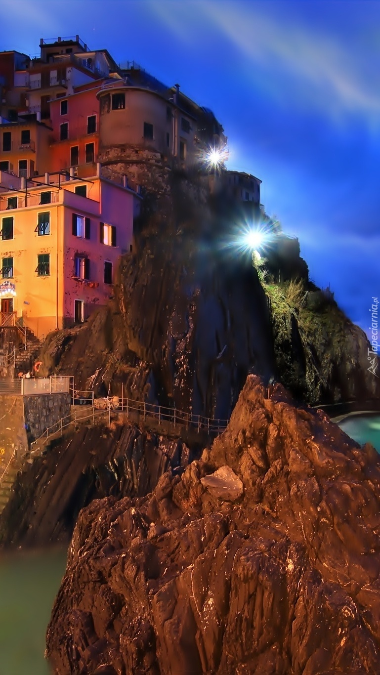 Edytor tapety: Zamieszkałe skalne morskie wybrzeże we Włoszech.