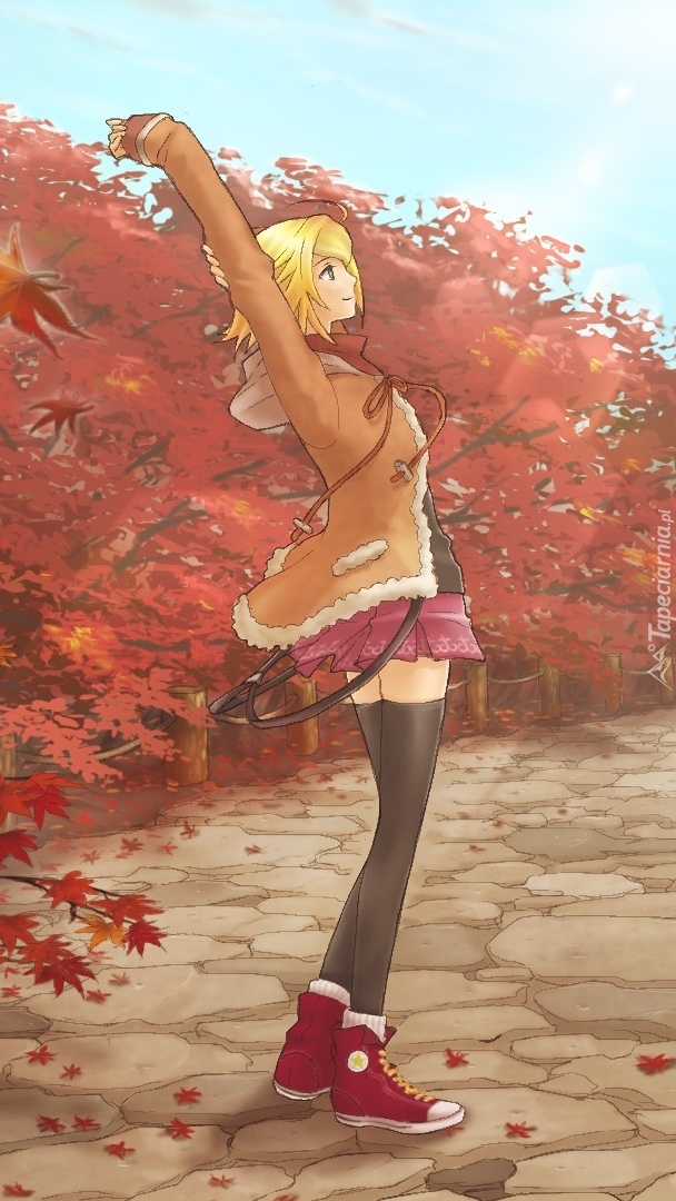 Edytor tapety: Jesienna dziewczyna w czerwonych trampkach