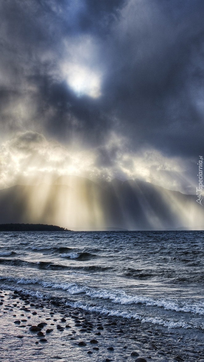 Edytor tapety: Szara ponura kamienista plaża