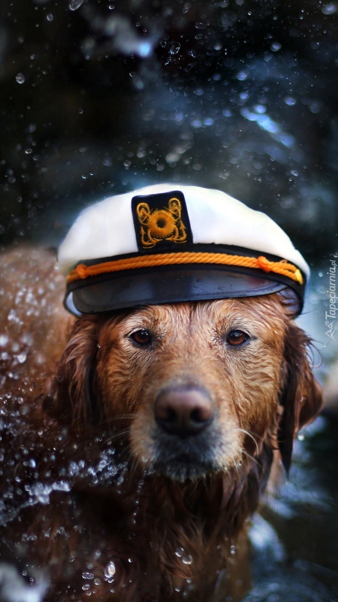 Edytor tapety: Mokry labrador w czapce marynarskiej