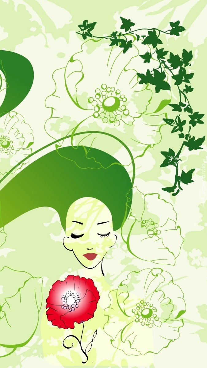 Edytor tapety: Portret kobiety z czerwonym kwiatkiem