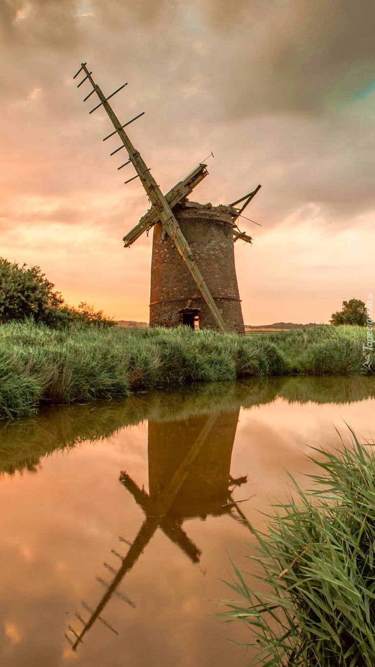 Edytor tapety: Zrujnowany wiatrak nad rzeką