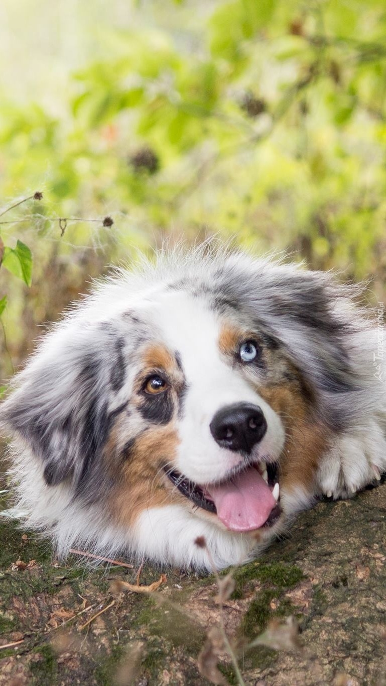 Edytor tapety: Pies leżący na zwalonym pniu