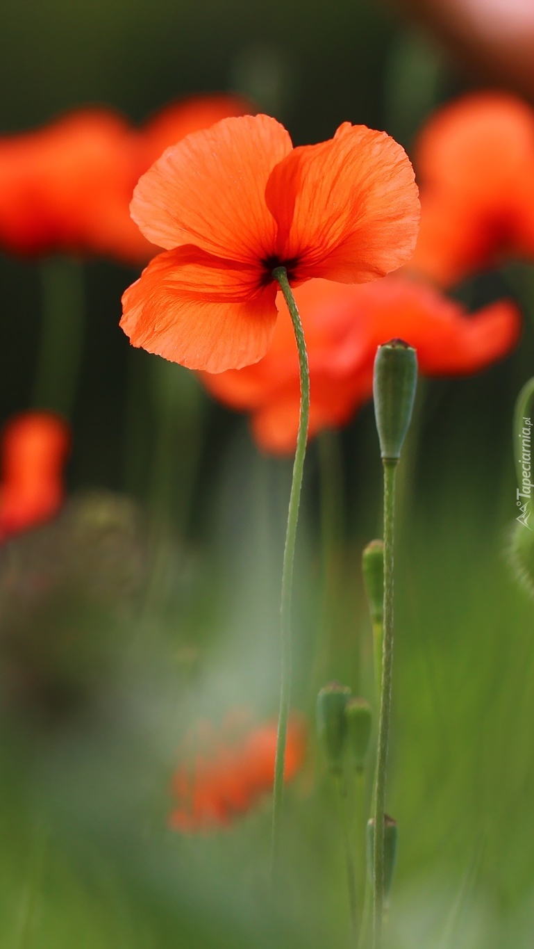 Edytor tapety: Czerwone maki o delikatnych płatkach