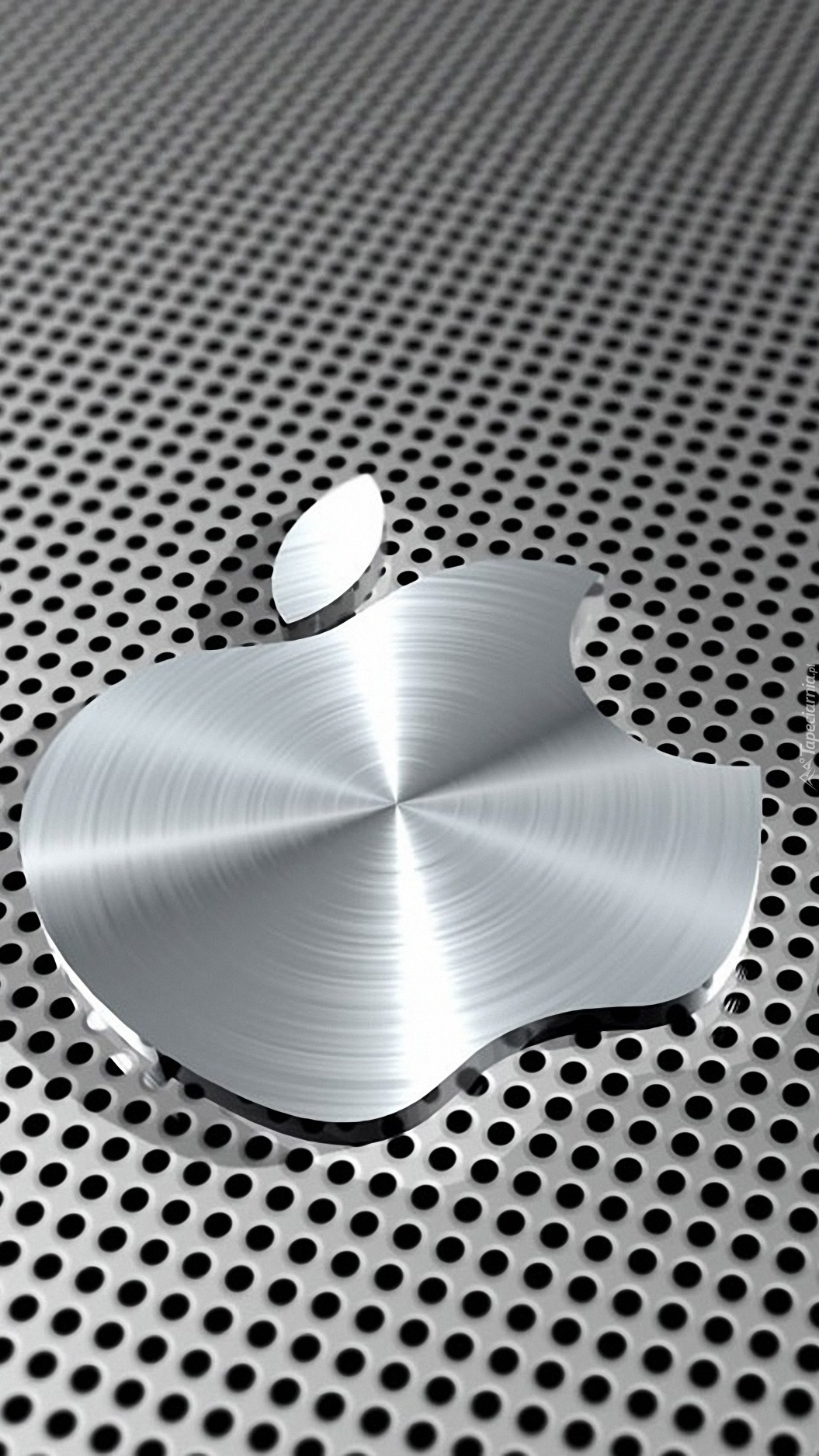Edytor tapety: Metalowe Apple na dziurkowanym tle