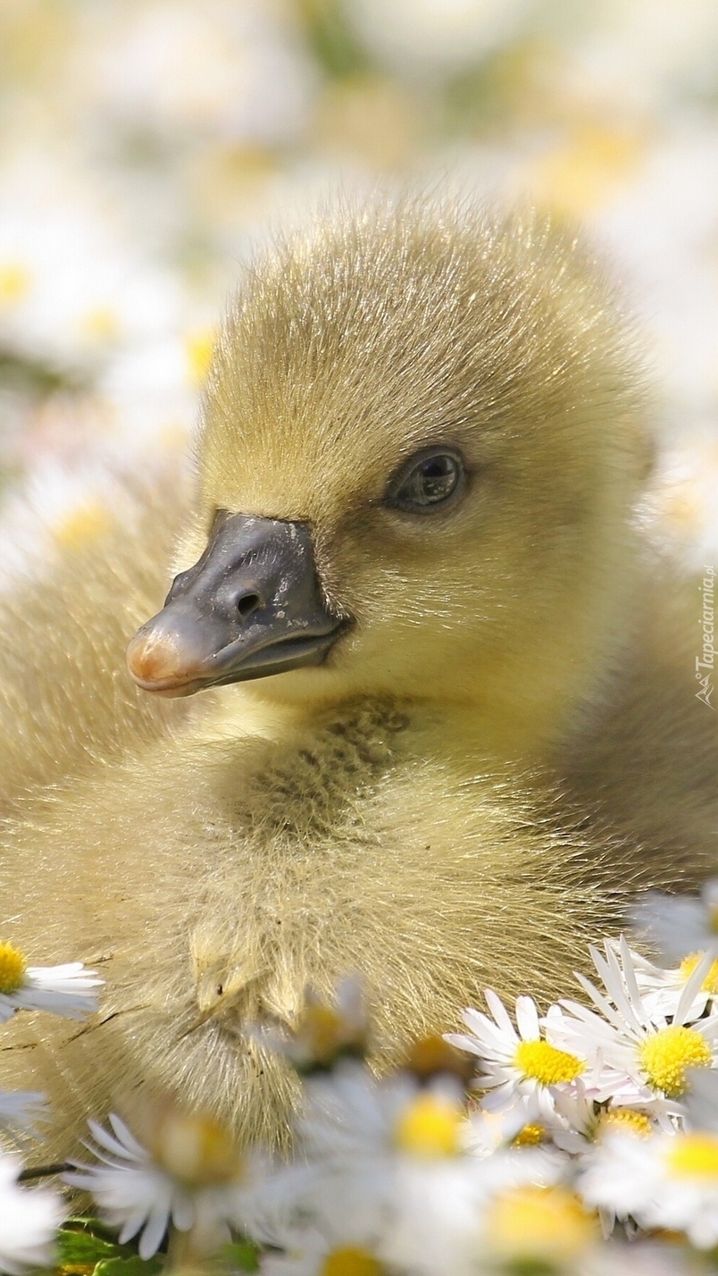 Edytor tapety: Młoda gąska wśród stokrotek