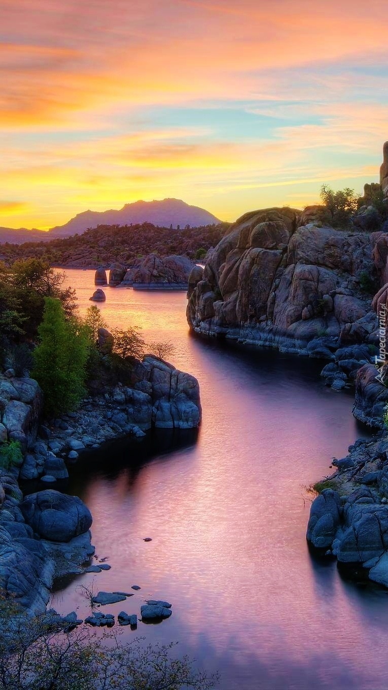 Edytor tapety: Kręta rzeka o zachodzie słońca